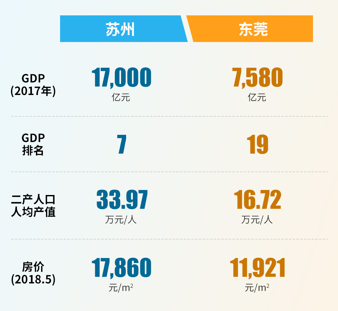这两个城市的主要产业都是制造业,而从数据上来看,二产人口的人均产值相差较大,苏州高出东莞近一倍。也就是说无论是制造业的内涵还是结构,苏州都远远优于东莞,城市竞争力也不言而喻。从人口的角度看,苏州高端制造业从业人口占比远高于东莞,这也是造成两地房价支撑存在差异的重要原因。