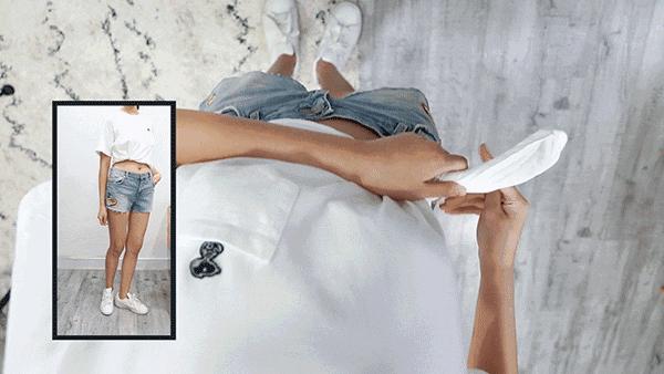 给T恤打结的时候我们一般都喜欢打侧边结,像这样转啊转扭啊扭,一只花骨朵就出现咯。露腰白t 短裤,可是101美少女的夏日必备搭配。