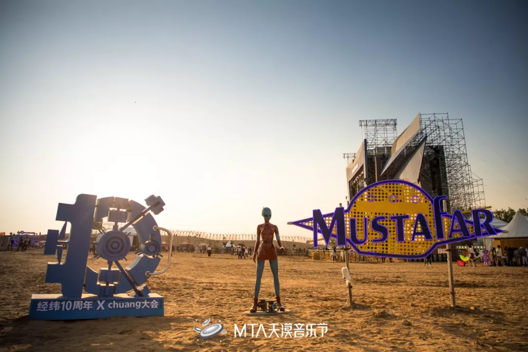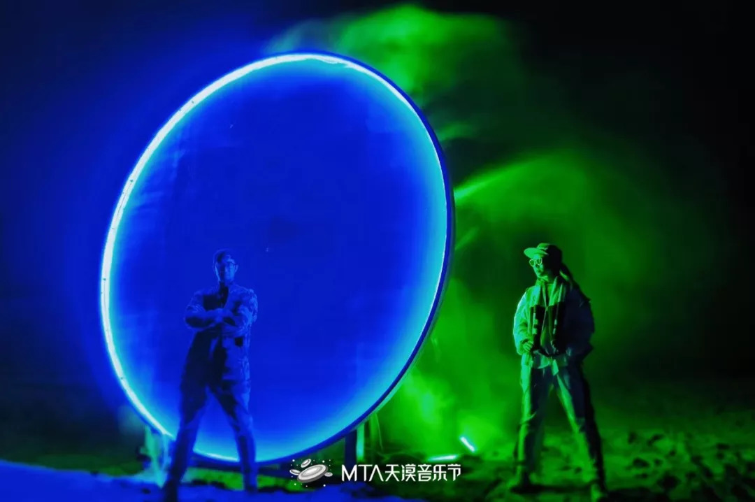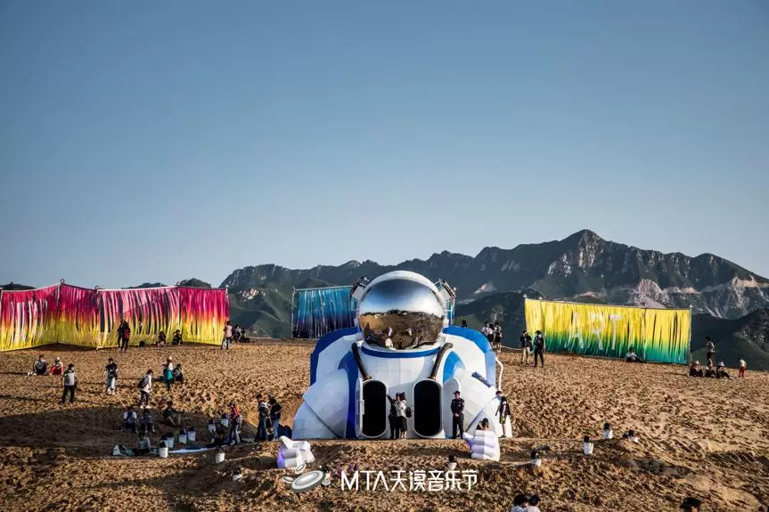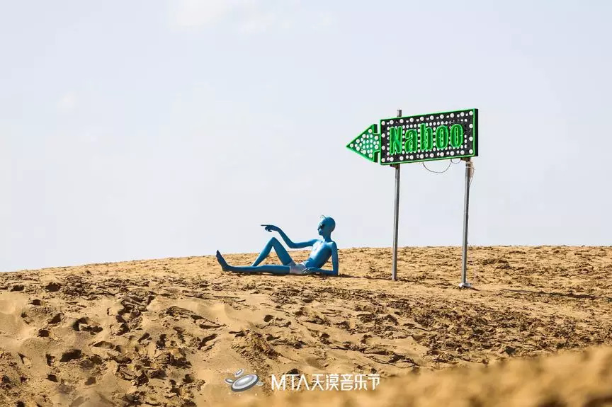 如果是平时驱车前来,首先引入眼帘的是“河北天漠影视基地”的字样,然后才是一片沙漠。而在天漠音乐节期间,这里的影视基地会暂停几天拍摄,而沙漠会被各种稀奇古怪的装置填满,充满设计感。