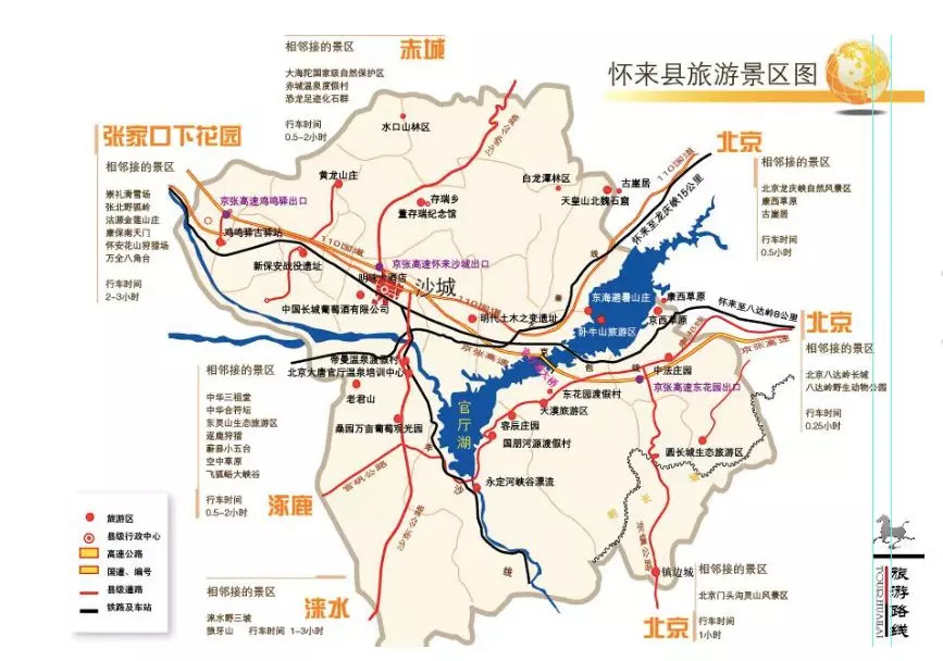 在区位优势上,站在怀来这片土地上,可以很方便的与北京延庆、昌平、门头沟等地区来回交流,同时还是张家口市对外开放的窗口,县政府所在地沙城镇东距北京120公里,西距张家口市87公里。