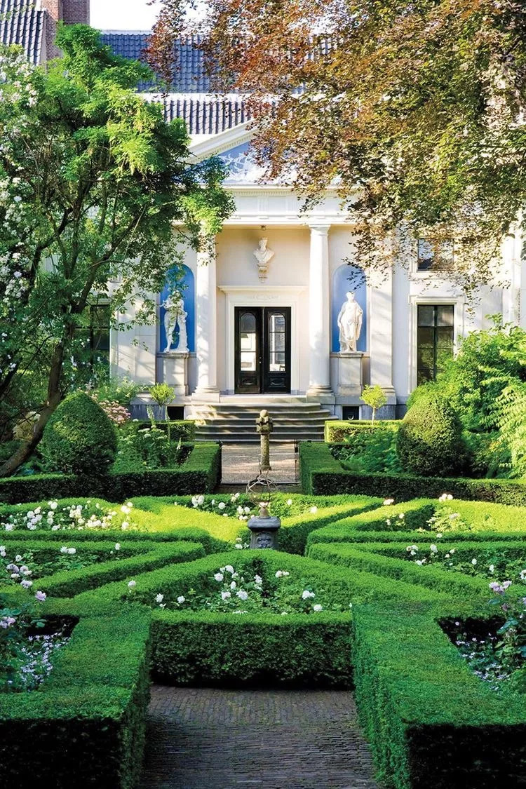 在阿姆斯特丹30多条运河的包围下,你即便能走过那些大大小小的街道,也未必能感受到它完整的精致。因为还有很多私家庭院被隐藏其中,比如最有名的庭院之一——范龙博物馆的庭院。它只在每年6月持续3天的花园开放日Open Garden Day期间对公众开放。这处宅院于1672年落成,最初是著名画家费迪南德 波尔的家。这里的花园极其宁静典雅,精心修剪的灌木丛散落在花园四周,将中心小巧可爱的雕塑衬托得仿佛精灵一般,这座庭院显然借鉴了意大利式花园的理念,没有姹紫嫣红的鲜花,只用满目的苍翠就呈现了一个美好的世外桃源。
