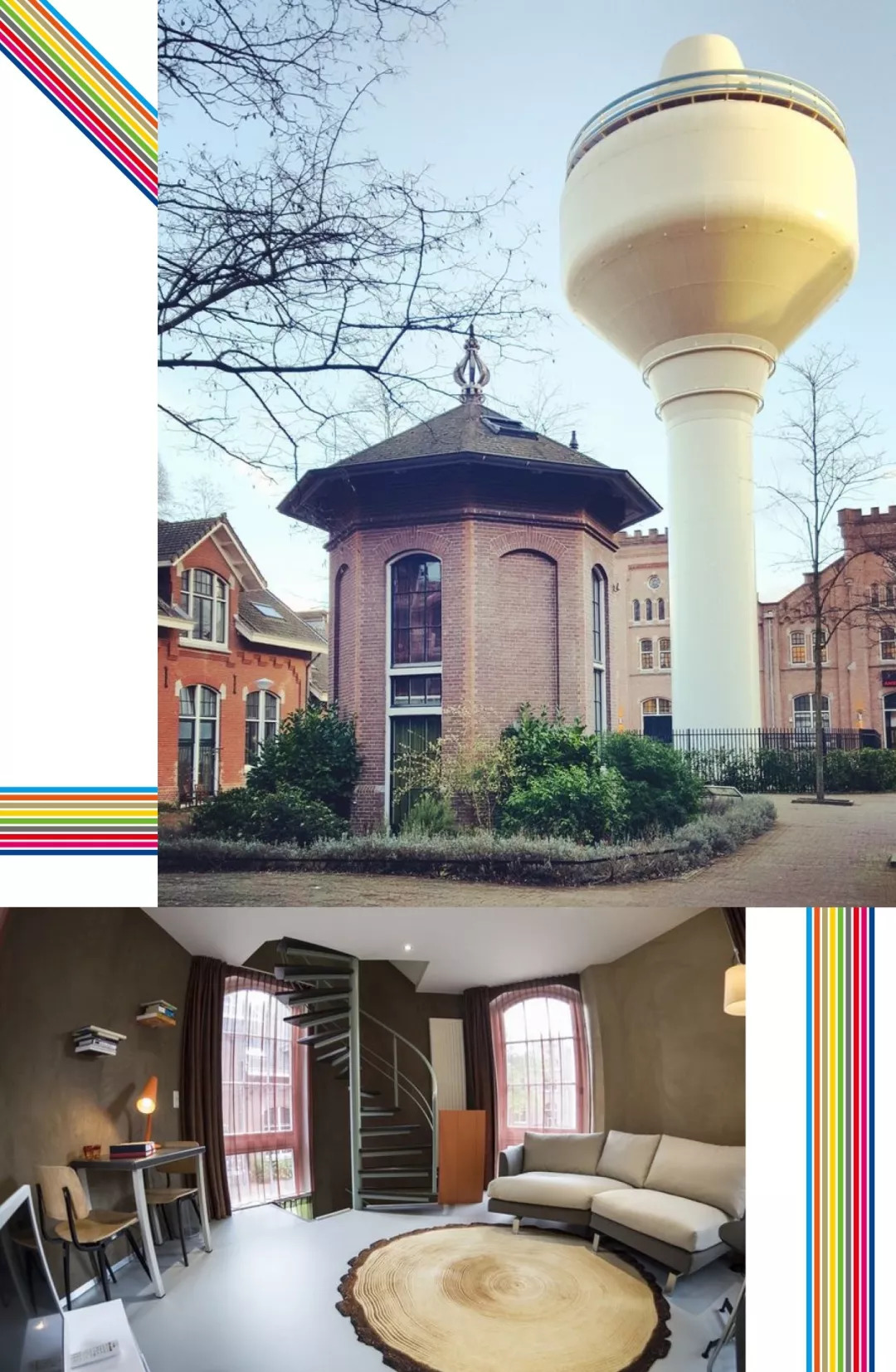 Hotel de Windketel坐落于阿姆斯特丹Watertorenplein中部的一座独立的塔楼内。在20世纪,它曾是市政自来水厂的一部分,也是里面建筑最小的。如今,这个建筑已改装为三层楼的酒店,并配备了所有现代舒适设施。虽然塔的周围市井气息浓重,但入住其中,又有隔世般的宁静感。