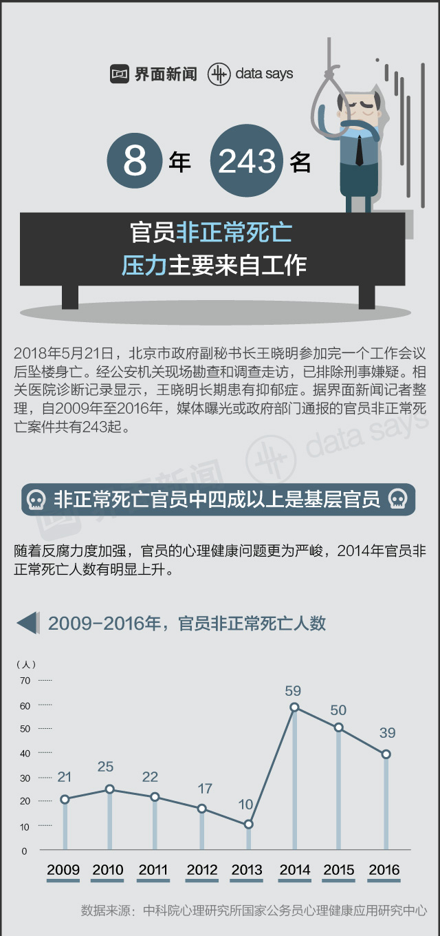 快看 | 8年243名官员非正常死亡 压力主要来自工作