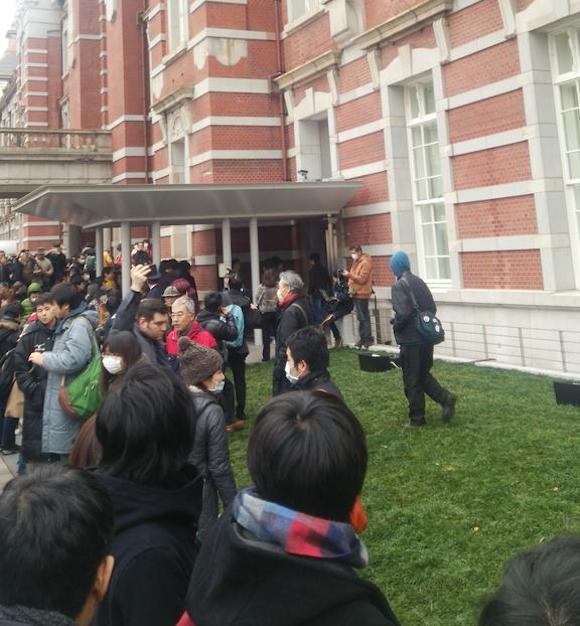 “早晨的东京站。购买纪念卡的队伍太厉害了!工作人员太少,根本分不清哪里是队伍的最末。JR(日本铁道公司)东日本安排也太差了!放弃购卡了。”