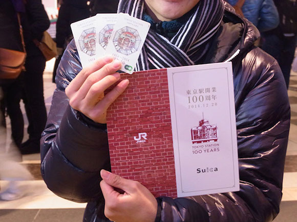 2014年12月20日,日本东京站建成100周年,东京站从早上8点起出售纪念版西瓜卡Suica(日本的公交卡,公交和地铁通用),总共15000张,每人限购3张。