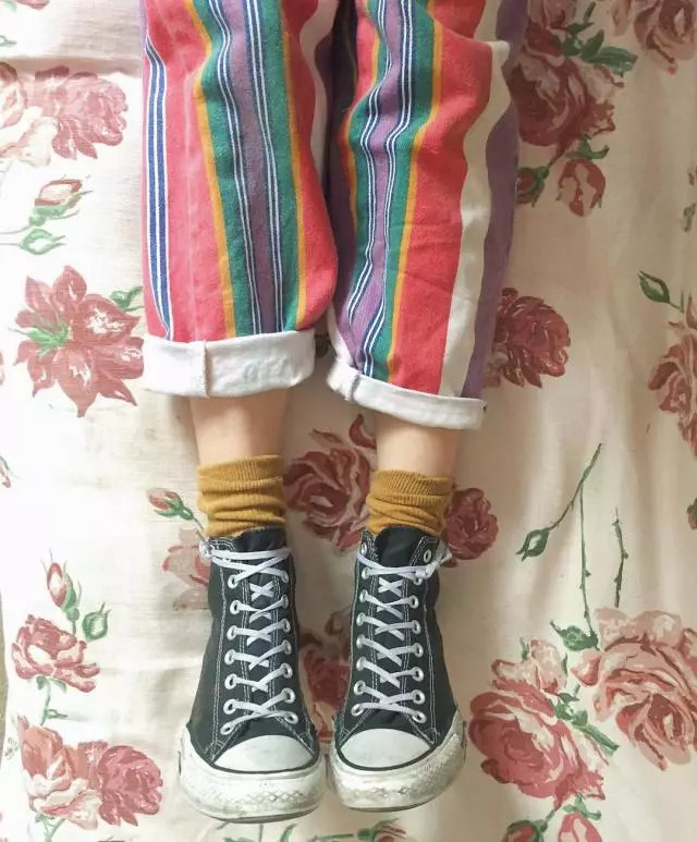 彩色条纹上衣或筒袜本身的颜色就很具视觉冲击力,所以与暗色、纯色的单品(黑色、白色牛仔蓝)搭配,就会很具个性活力!