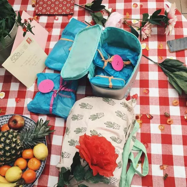 这种对色彩的热爱和搭配的乐趣几乎体现到了Libby生活的方方面面。就是去野餐或收拾行李,对色彩的讲究也十分严谨。