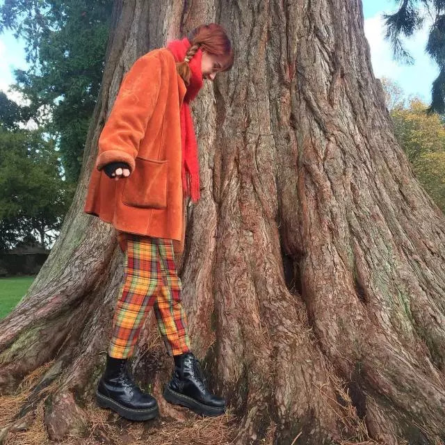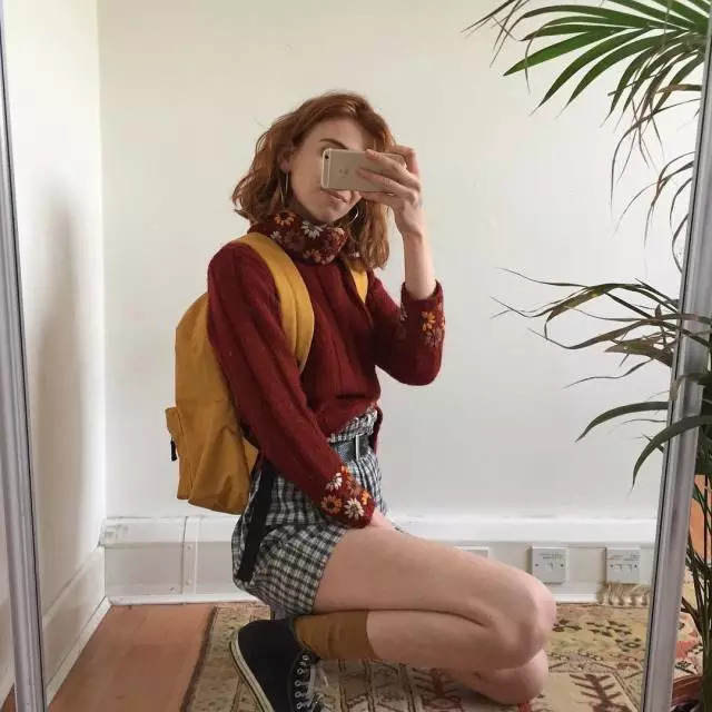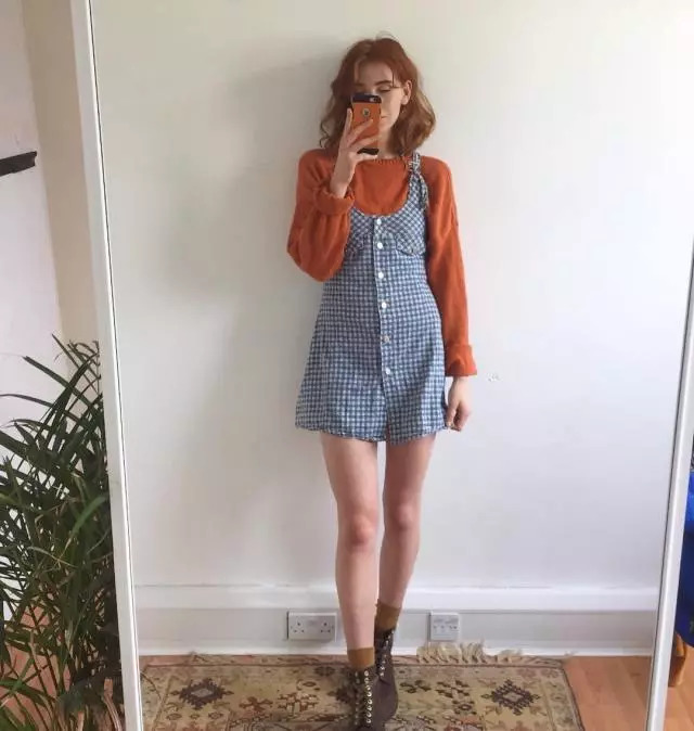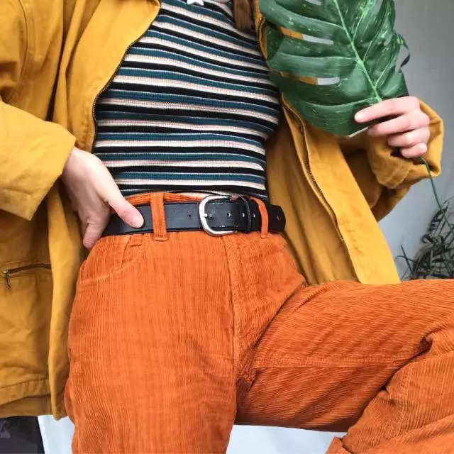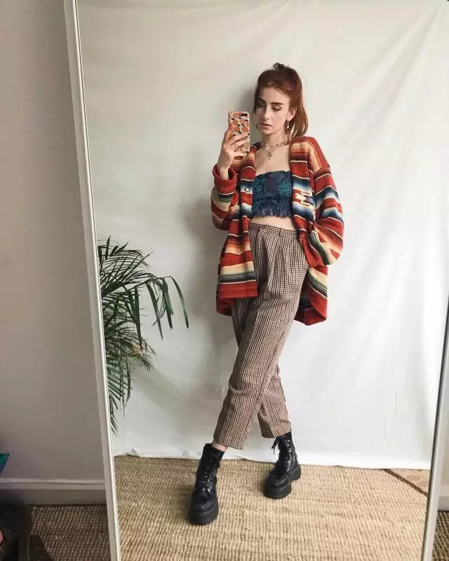 这里所说的大地色指得是像:红色、黄色、橘色、棕色..等这些充满暖色系的颜色。通常情况下,将这种同为暖色系的单品搭配以来,都会给人一种暖暖的古着色彩。