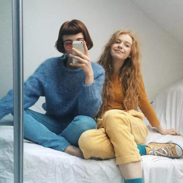 所以就更别提与闺蜜小伙伴们一起拍照合影了,两人总是将服装的撞色玩到极致!