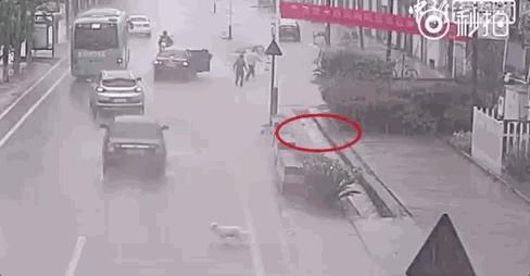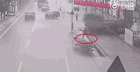 跌入路边水流湍急的排水渠中