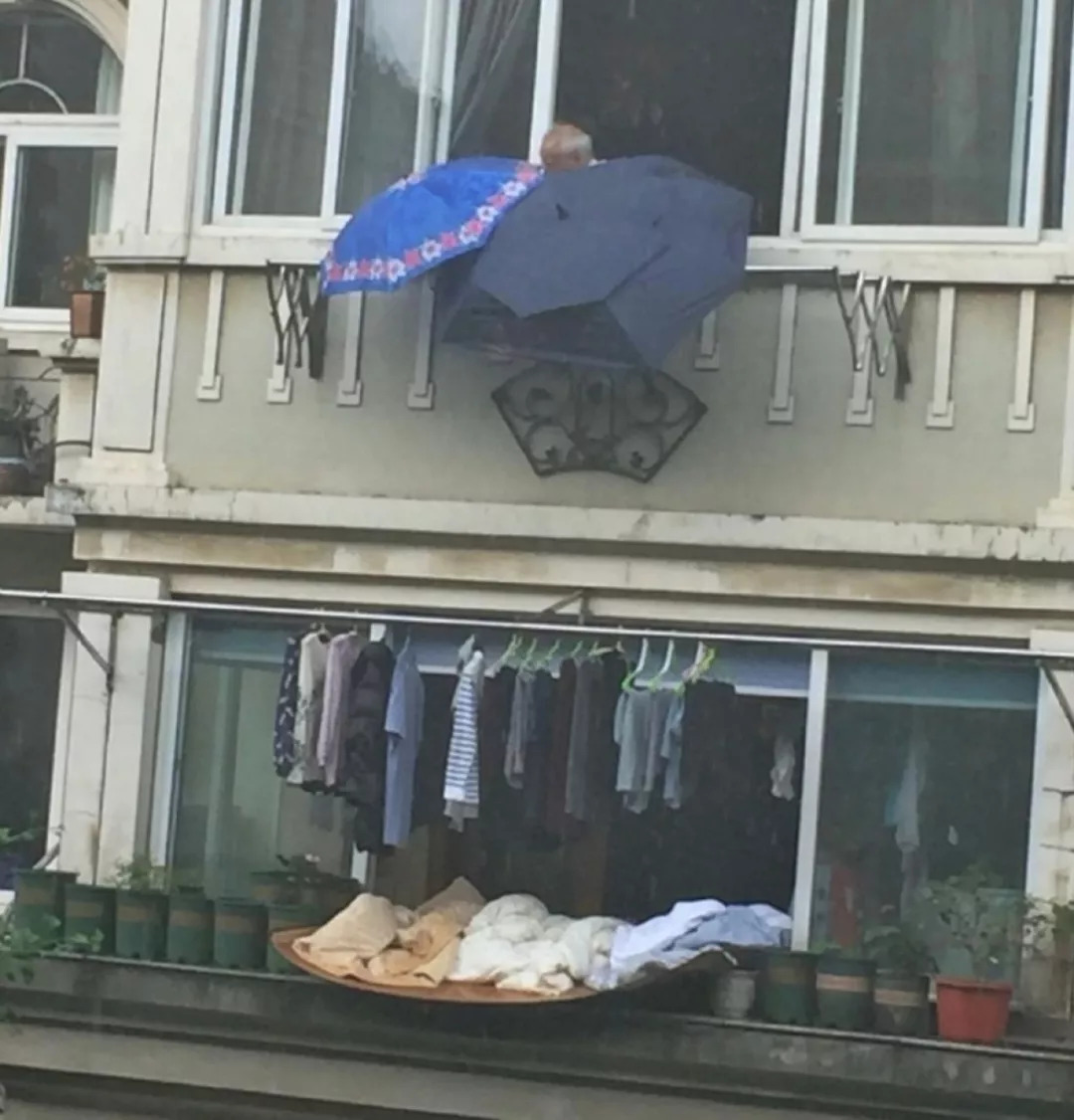 楼上的爷爷看到楼下衣物未收
