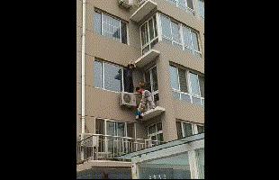 山东昌乐一男童从5楼窗户翻出