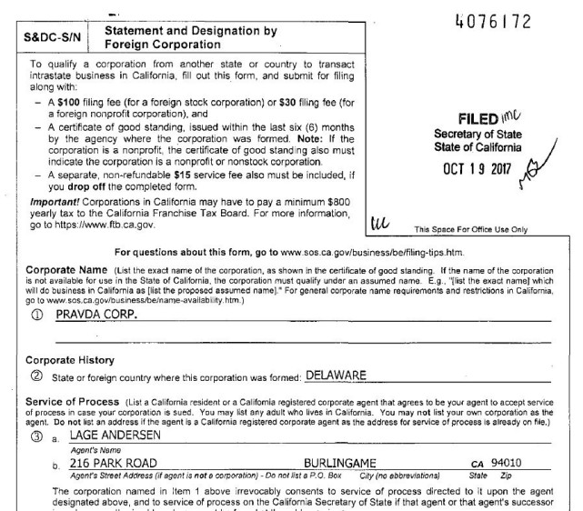 事实上,马斯克早在推特上发布这一消息之前,已经将这一想法付诸实践。马斯克的代理人在去年10月份就已经注册了一家名为PRAVDA的公司,注册地位于加州柏林更。