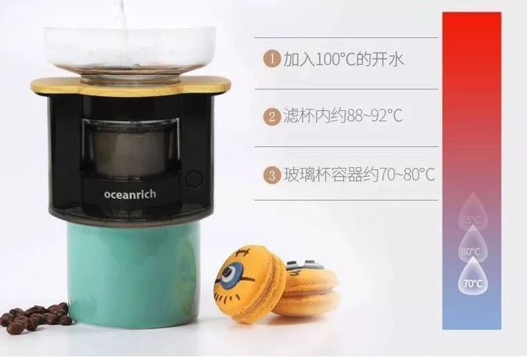 你只需往水箱加入100℃的热水,从水箱滴注的温度,刚好就是合适的萃取温度。