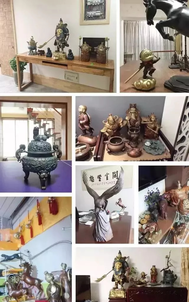 一个”铜粉”在自己不大的房间里,桌子上,柜子上,床上,墙上,全都摆满了铜师傅各种各样的作品。铜师傅最疯狂的一个铜粉,可以一年买30多万的铜工艺品(不含家具)。