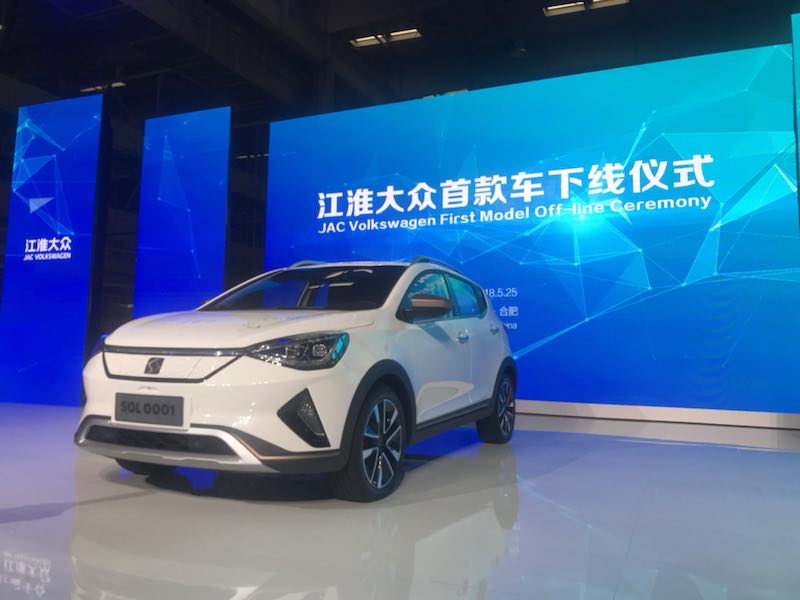 5月25日,江淮大众首款量产车型思皓SOL E20X在合肥江淮第一工厂正式下线。
