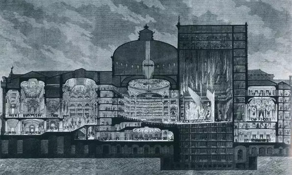 巴黎歌剧院又名加尼叶歌剧院 ( L'Opéra Garnier ) ,当时才35岁,还是名不见经传的查尔斯·加尼叶奇迹般地从众多投标的建筑大师中脱颖而出,在拿破仑三世权力的意志下修建巴黎国家歌剧院的竞标中大获全胜。看似如此幸运的加尼叶,却在巴黎歌剧院的修建历程中历经万难与坎坷。从1860年到1875年,法国爆发了普法战争和第四次革命,帝国政权和公社相继垮台,在资金断缺,物资匮乏,人心惶惶的历史动荡时期,加尼叶的建筑团队几经沉浮,在超出计划的数年后的1875年1月15日终于竣工了当时世界上最大的歌剧院——巴黎国家歌剧院。
