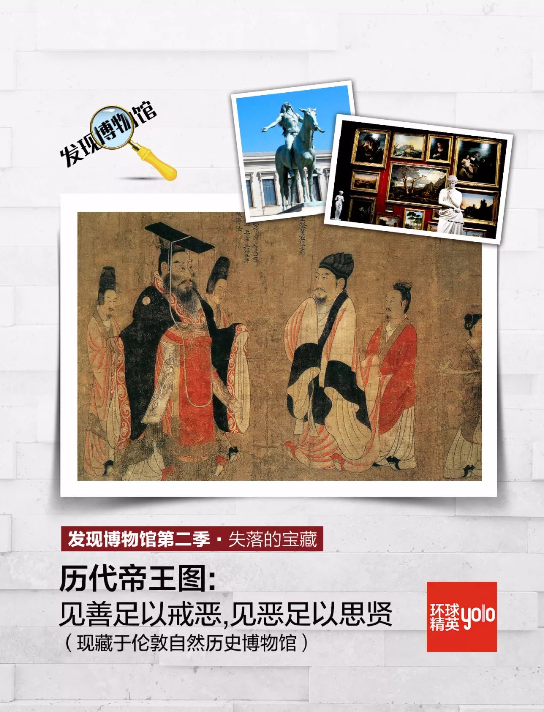 梁鸿志是清末巨儒梁章钜之孙,“七七”事变后,在日本侵略者的策动下,组织维持会,卖国投敌。1929年,《历代帝王图》曾经在日本东京举办的《唐宋元明名画大观》中参展。1913年,美国人邓曼 罗斯通过日本古董商山中定次郎,最终将《历代帝王图》征集到手。