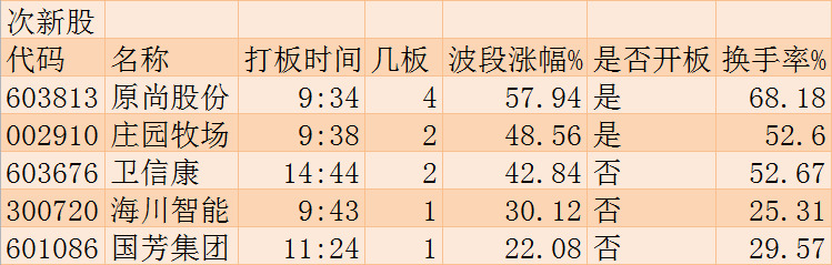 上涨情况:虽然次新股龙头宏川智慧继续停牌,但是次新股板块指数今日再度上涨0.02%,盘中有5只个股涨停。