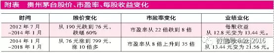 下面笔者将通过自己之前投资贵州茅台的经历,来举例说明以上观点。下图(见附表)记录了始于2012年贵州茅台先跌后涨的变化过程中,估值水平变化以及业绩的变化。以市盈率为表现形式的估值水平其实就是市场中绝大多数投资者的认知。每股收益代表了企业客观内在价值,每股收益变化就是企业客观内在价值变化。通过对比2012年到2018年这六年间,公司股价和市盈率的变化,读者可以发现,真正的投资价值,往往是由主观认知的变化所引起的。