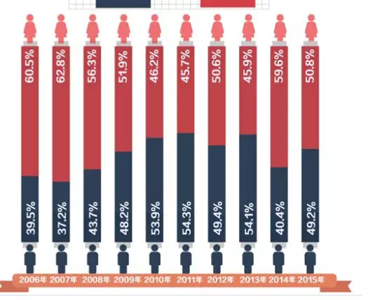 同样在教育行业,北大的教授曾公开表示思辨式、复杂的题目,女生就是不如男生,然而数据却显示,近十年,高考理科女状元以52%的比例高于男生。