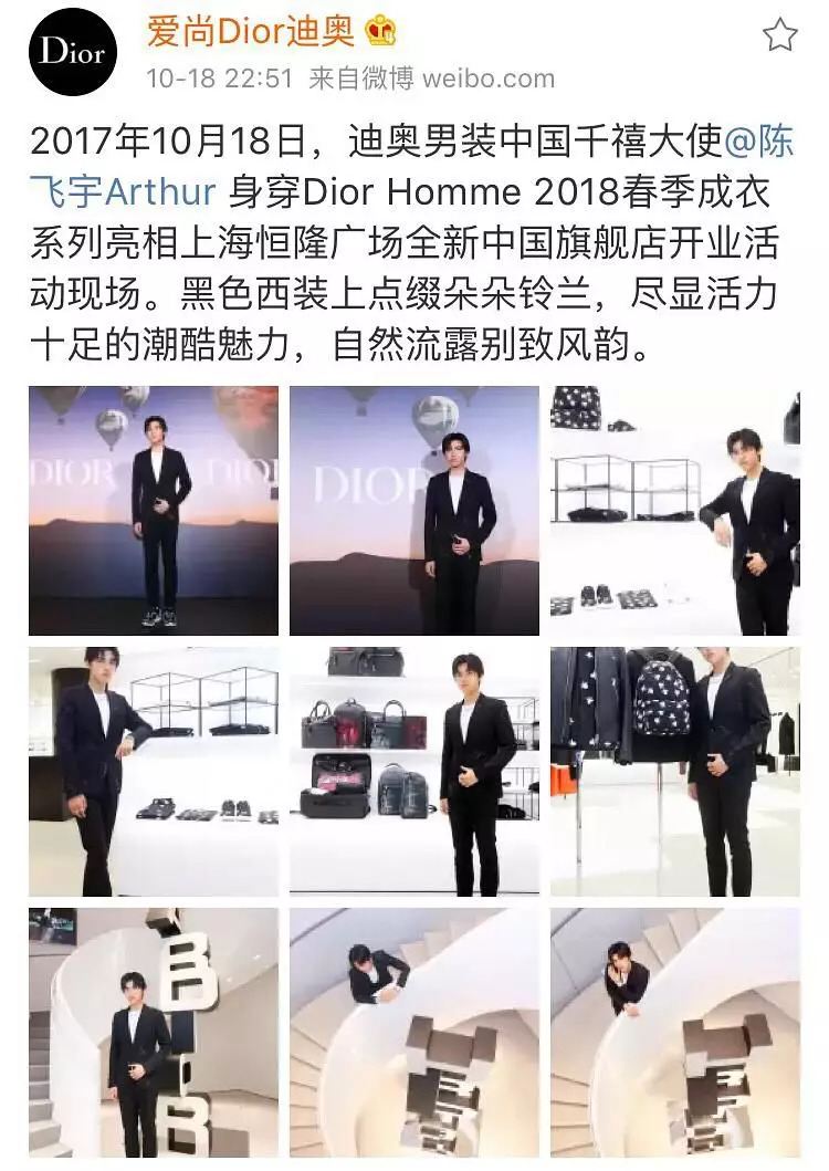 《秘果》上映后没多久,迪奥就官宣陈飞宇是迪奥男装中国千禧大使。