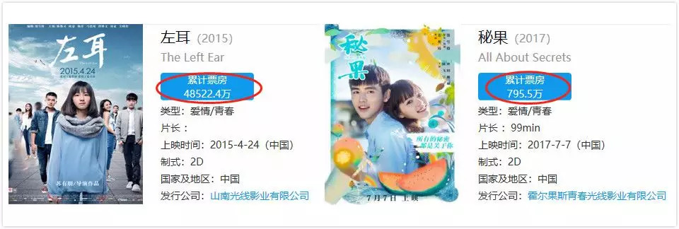 (《左耳》姐妹篇的《秘果》,被《左耳》的票房吊打)
