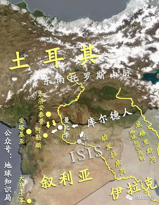 所以时隔一年,2018年年初土耳其又一次发动了“橄榄枝”行动,并且略加变动了行动策略,改为挺进叙利亚曼比季镇、并向东推进至伊拉克边界。