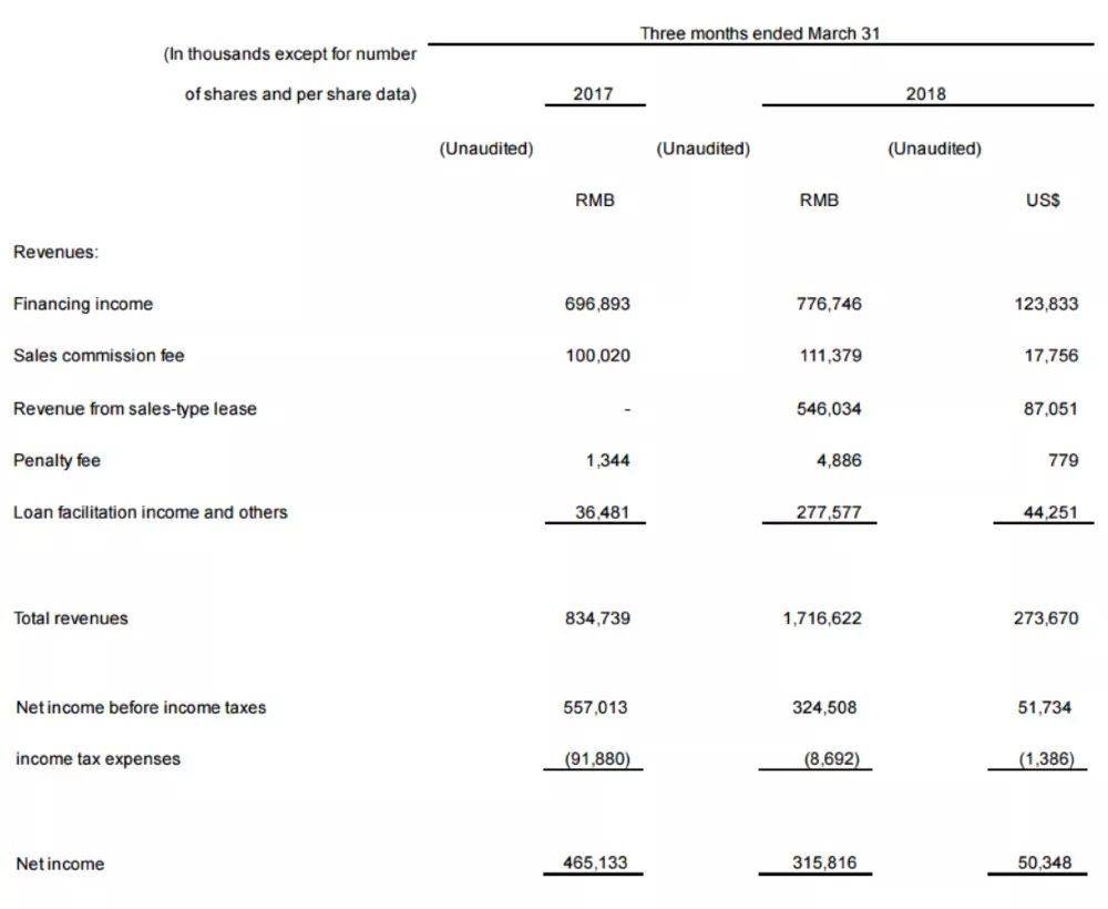 数据显示,大白汽车当季销售型融资租赁收入为5.46亿元,累计交付车辆6608辆。这一数字引起了业内的注意,要知道今年2月份,趣店高级副总裁、大白汽车业务负责人许龙曾公开透露,趣店2018年第一季度末累计交付车辆“已近万辆”。做金融的趣店、大白汽车,不会意识不到数字6608和“近万”的差别。