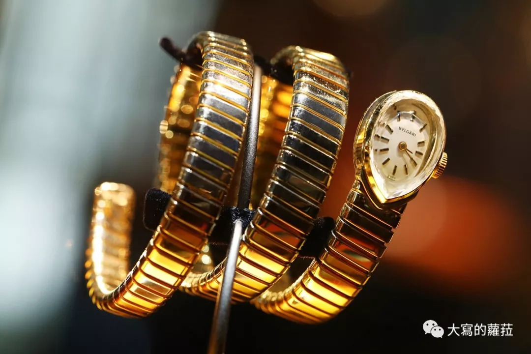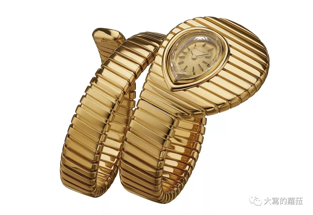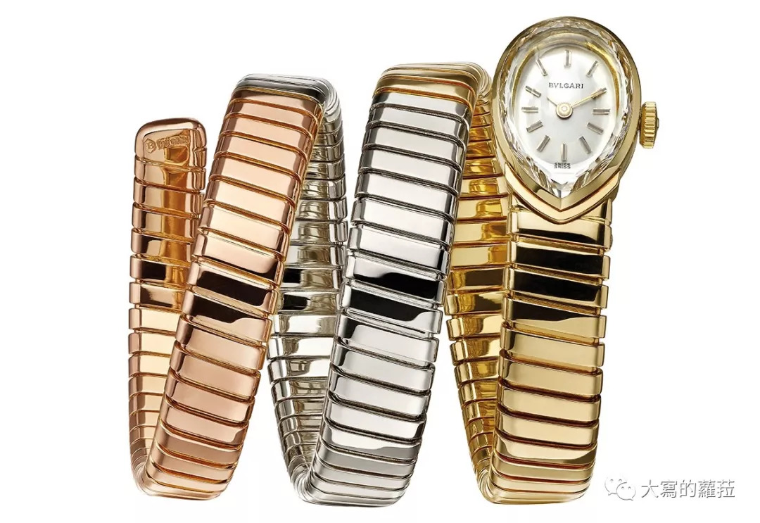 △ 宝格丽创作于1960年的Serpenti Tubogas三色金腕表,将黄金、白金与玫瑰金三种材质結合渐层。