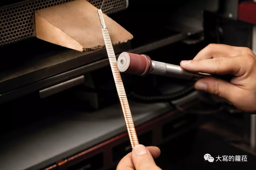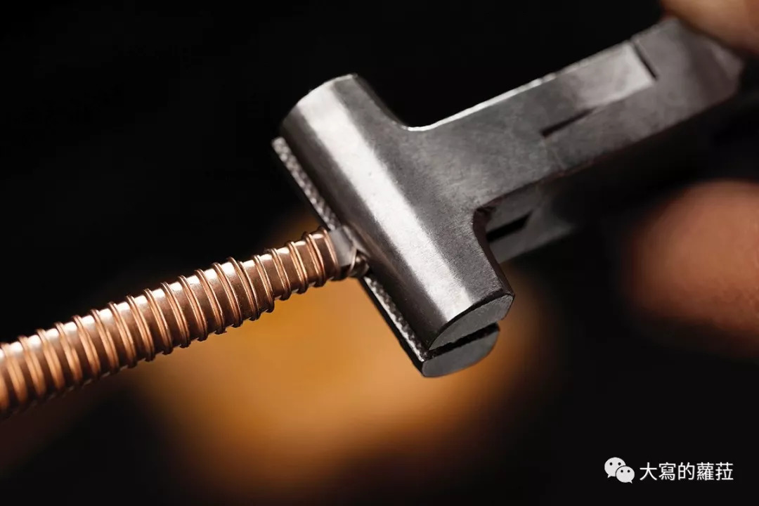 △ Tubogas工艺需将长长的金属薄片缠绕在木质或金属固定片上定型。