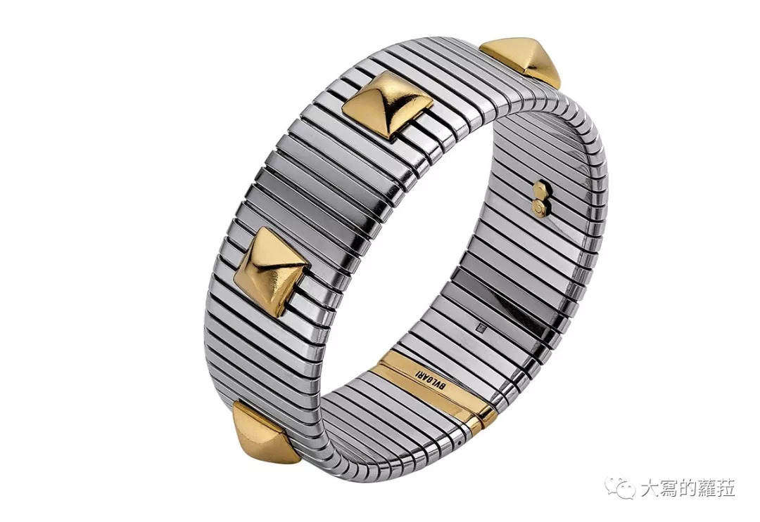 △ 宝格丽约于1975年创作的Tubogas黄金镶珐琅手环。