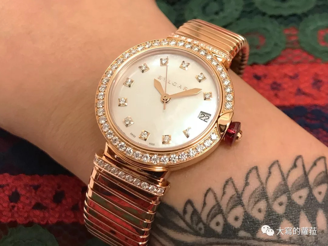 △ Lvcea系列首次引入宝格丽标志性的Tubogas表链,推出2018年全新Lvcea Tubogas光环腕表。