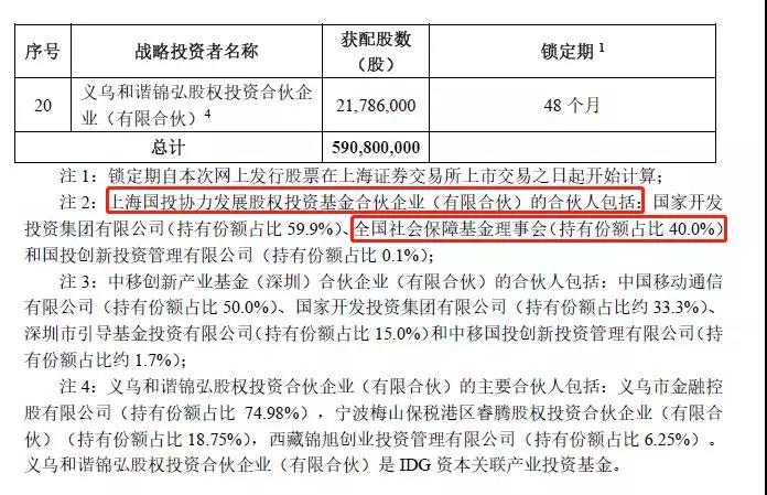 今日下午发布的《网下发行初步配售结果及网上中签结果公告》显示,20家战略投资者参与了战略配售。从投资者类型来看,大致可以分为国家队、央企队、互联网巨头队,还有地方国企队、金融机构队。