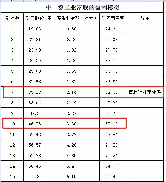 那么,中签了的就等着富士康上市了,中一签能赚多少钱呢,咱再贴个中签盈利模拟图。要知道刚上市的独角兽药明康德已经14个涨停仍未开板,中一签盈利金额高达8.58万元。