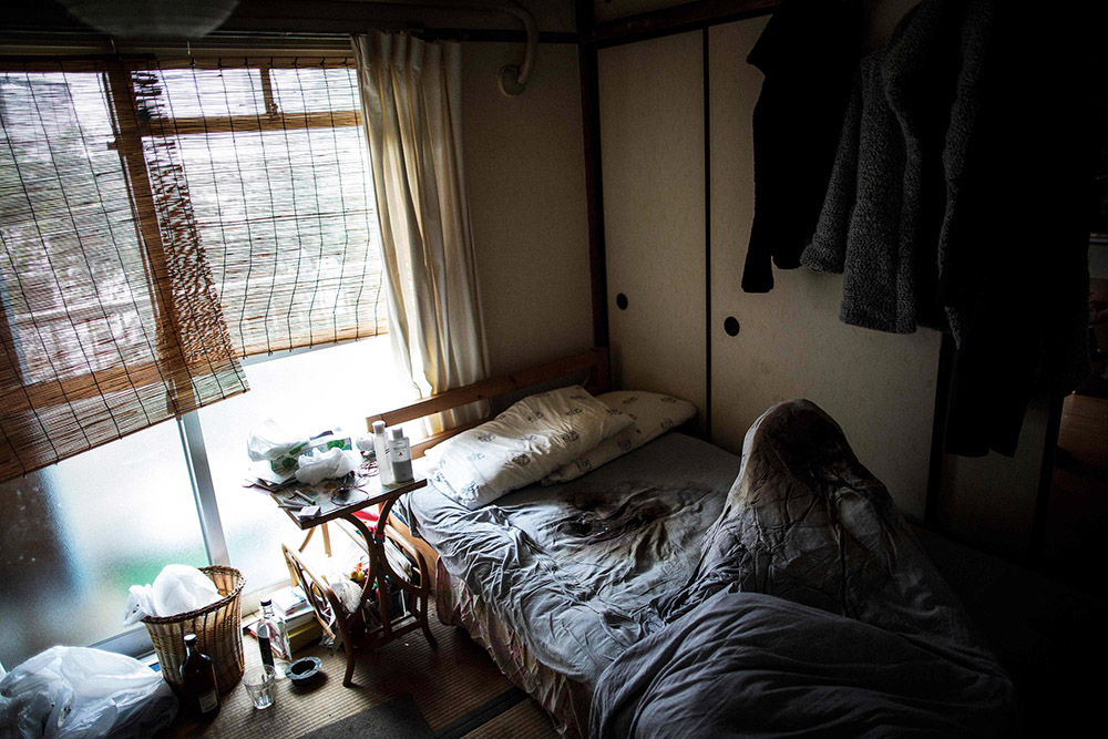 日本东京,男子生前所居住的公寓内景。一名男子独自在公寓中去世,并再三个星期后才被人发现。