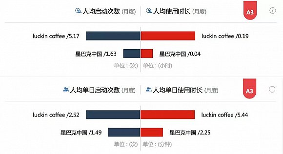 瑞幸咖啡、星巴克中国APP人均使用行为对比