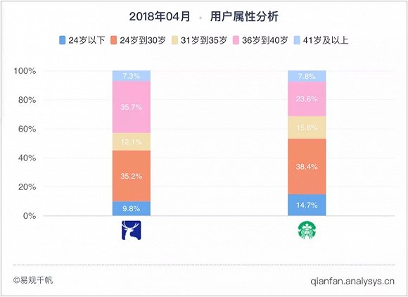 瑞幸咖啡、星巴克中国APP用户年龄对比