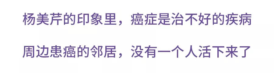 有一个杨美芹熟知的癌症病人,临死的时候头部和腹部都鼓得特别大,这是她对癌症的全部认知。