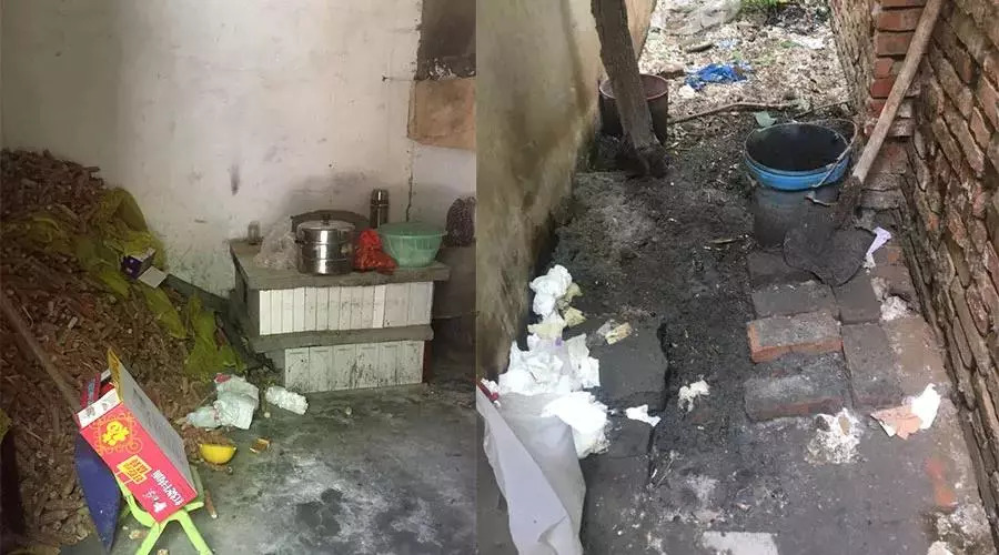 在家里的时候,志愿者让杨美芹的公公穿上最旧的衣服,在旁边一栋废弃的院子前站着拍照以显示自己的贫穷。