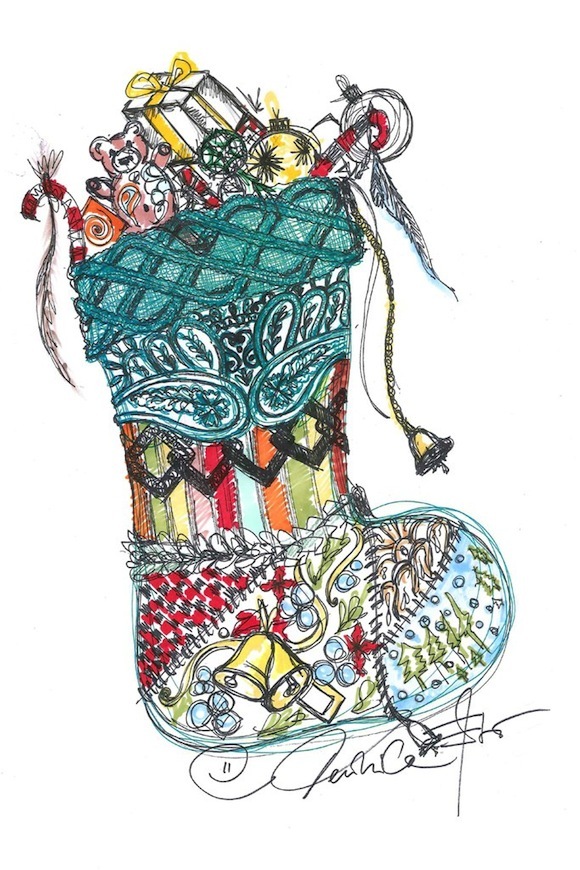 【13】“按照我喜爱找乐子的风格,尤其是在这个圣诞季时,我创作了一只可以把我所有爱好都放进去的长袜,里面有我对烹饪、时尚还有办完美派对的爱。”—Lela Rose ↓