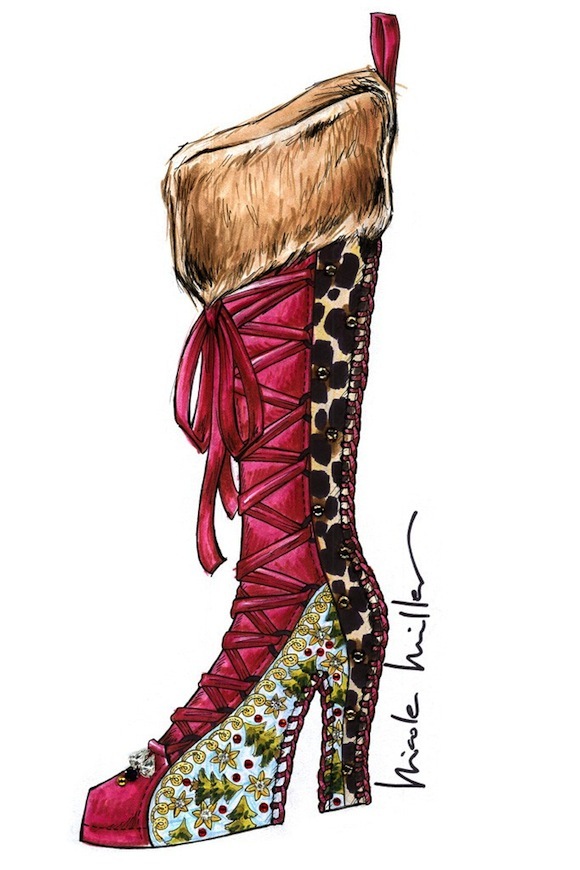 【15】“我的圣诞袜的灵感来自所有我爱的事物—一点豹纹、一点闪亮—当然还得有跟。这是所有女孩子都爱的!”—Nicole Miller ↓