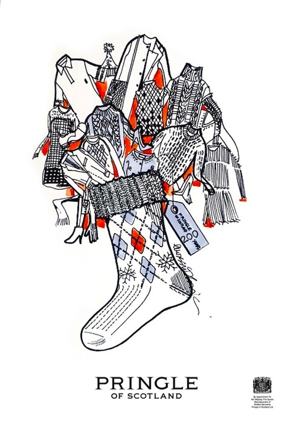 【17】“我的长袜设计灵感来自,这是一个装满羊毛衫、呢制衣物还有圣诞乐趣的冬季天堂,朋友们更可以相互温暖、欢聚一堂—这是一只完美的普林格(Pringle of Scotland)长袜。”—Massimo Nicosia ↓