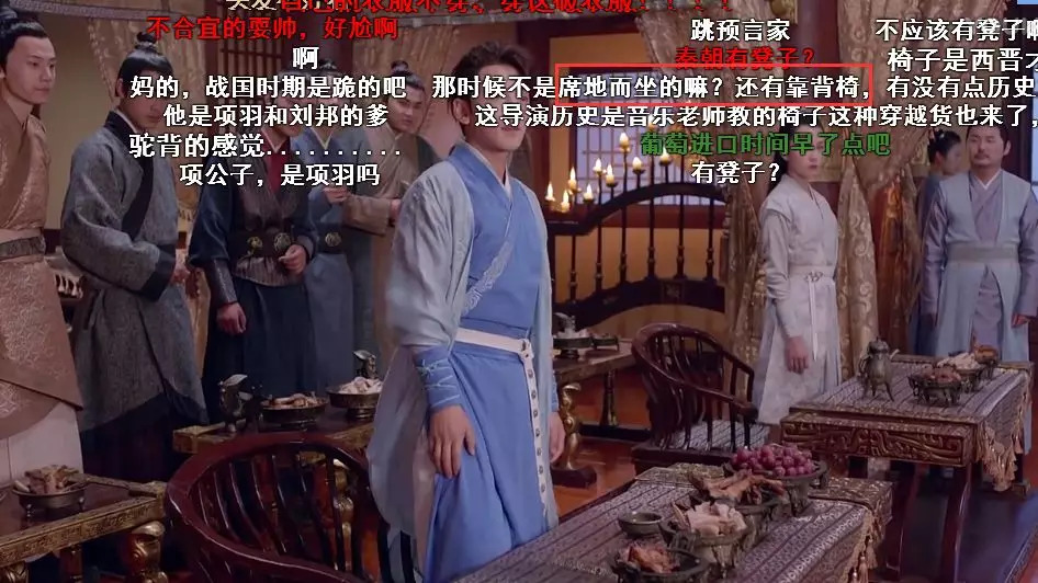 撇开剧中的服装是否符合秦汉时期的装束不谈,《天意》第三集中的电风扇头饰造型让人无法接受。而《寻秦记》中更是在那个时期出现了太师椅,要知道中国的椅子是要到唐代以后才有的……