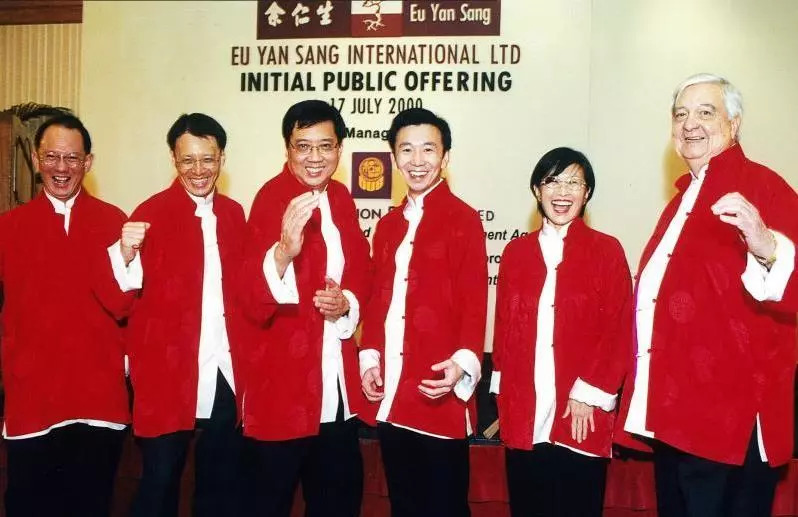 2000年,余义明(左三)出席余仁生的挂牌上市仪式