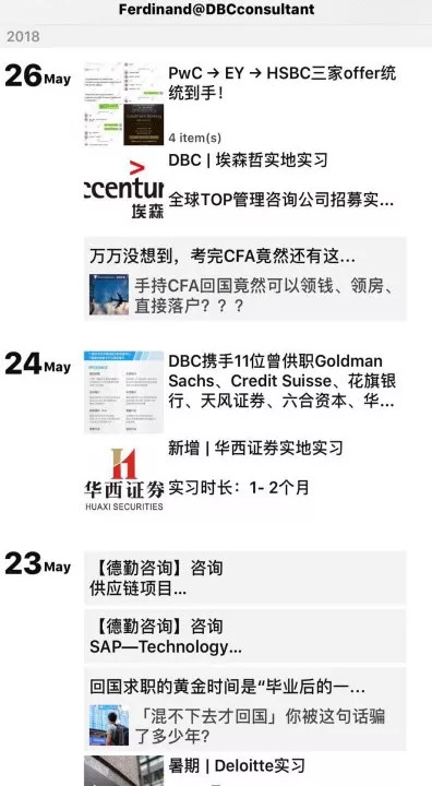 从对话内容来看,该公众号涵盖的机构职位非常广,包括券商、银行、四大会计师事务所、外资咨询机构。