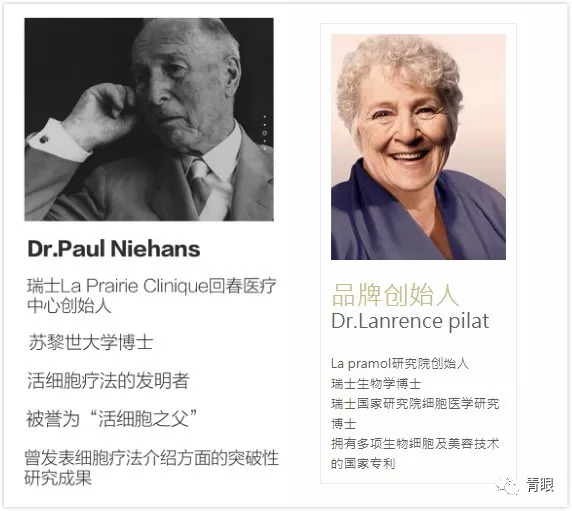 产品和技术可以后天努力,但血统是与生俱来的。La Prairie在品牌介绍中提到,创始人Paul Niehans博士出生于瑞士医学世家,是普鲁士国王 Frederick Wilhelm三世的后裔,身为贵族的他本就与各国皇室成员交好,创立瑞士La Prairie Clinique回春医疗中心后,受到梵蒂冈教皇十二世的称赞,被国际认可。而后受到日本天皇、阿拉伯国王、英国皇室、西班牙皇后、摩洛哥国王,国家领袖如法国总统戴高乐、德国总理、英国首相邱吉尔,以及大批著名的好莱坞影星的喜爱。