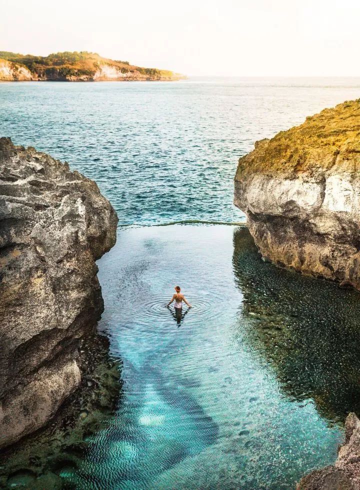 岛上有很多适合拍照打卡的网红取景点,Kelingking简直还原了《太阳的后裔》里沉船湾一模一样的风景。angel's Billabong则是一个是大自然打造出来的无边泳池了,离大海只有一线之隔,只要站进风景里,随手一拍都是大片。