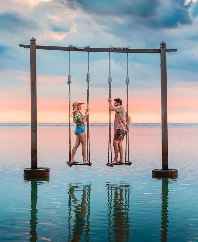 同时,吉利岛还是非常适合拍照的一个岛,整个岛上没有汽车,只有马车,游客都骑自行车。网红海上秋千,日落时分拍剪影,浪漫至极。