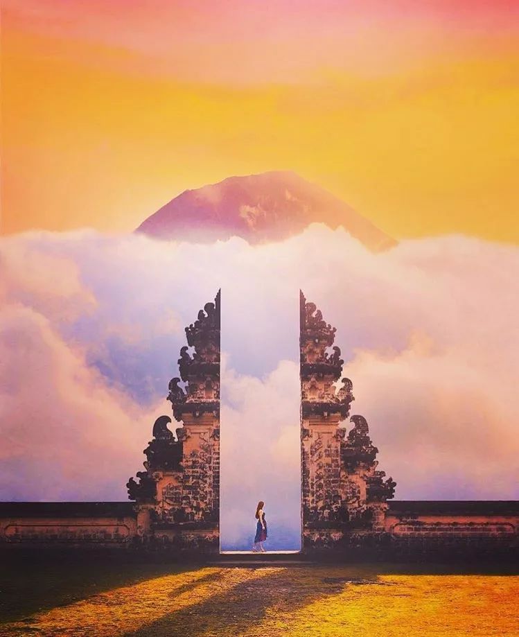 这个寺庙群位于海拔1000米以上。它是印尼巴厘岛最重要的寺庙之一。又名1000步庙、天空之门。以火山阿贡山为背景,寺庙就像是藏在云里,拱门就像是通往异世界的大门,据说很多人都是看到天空之门这张照片,下决心来的巴厘岛。